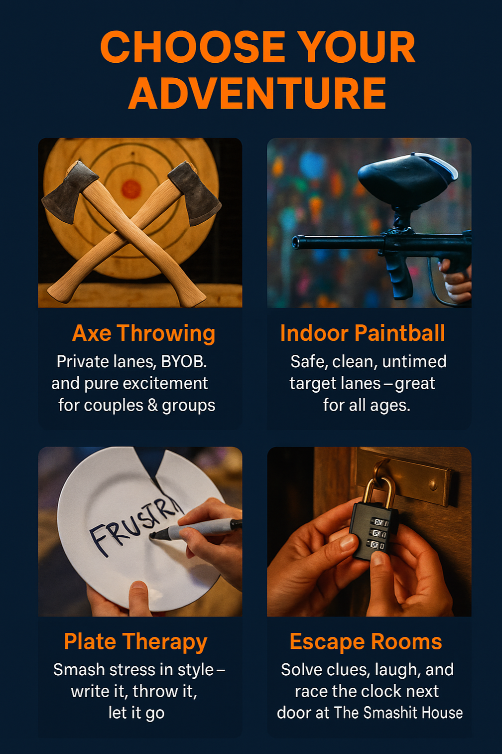 🪓 Couples Axe Throwing, Paintball & Plate Therapy