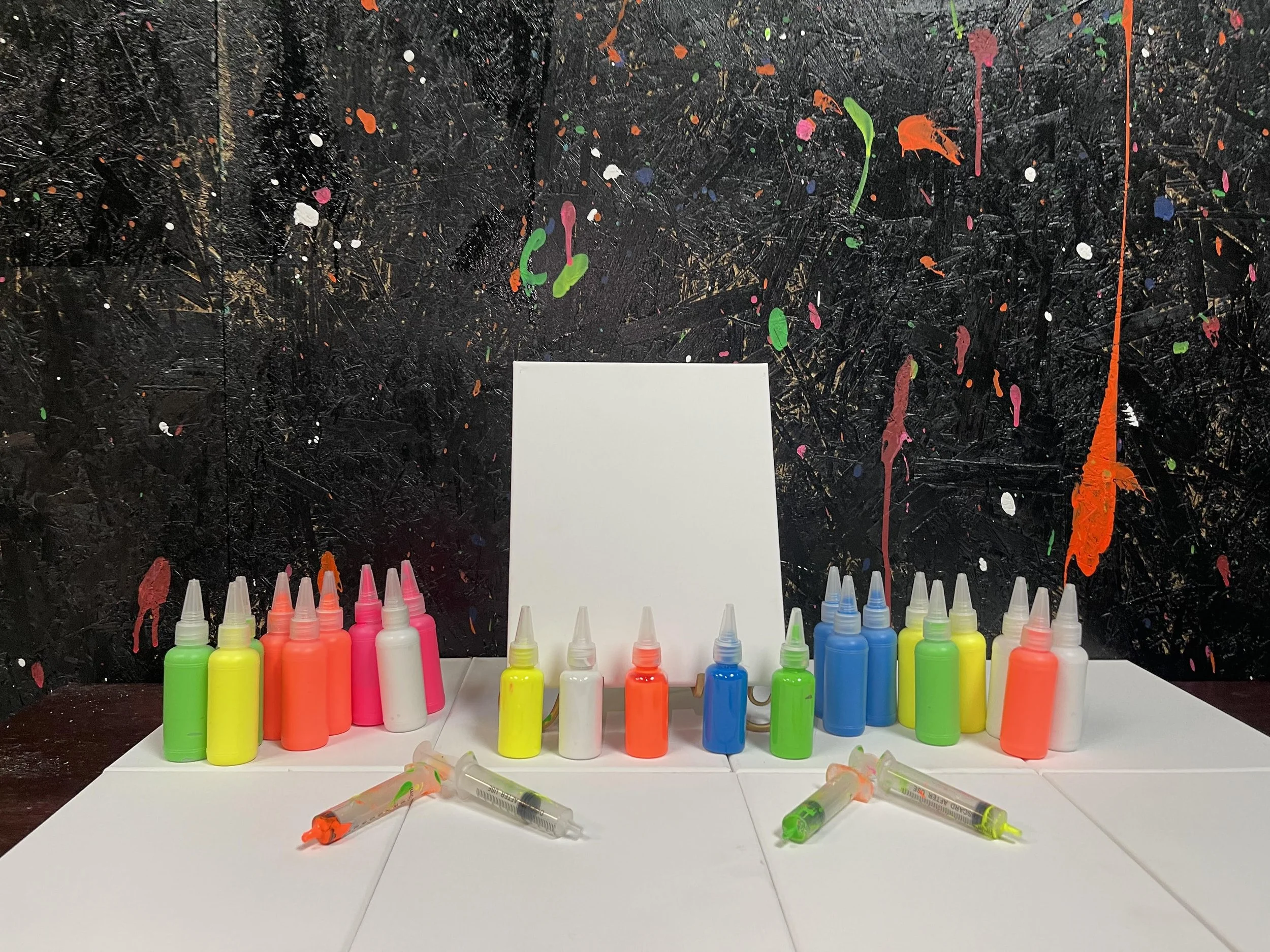 Two 8″x 10″ canvas to share with the group to splatter!