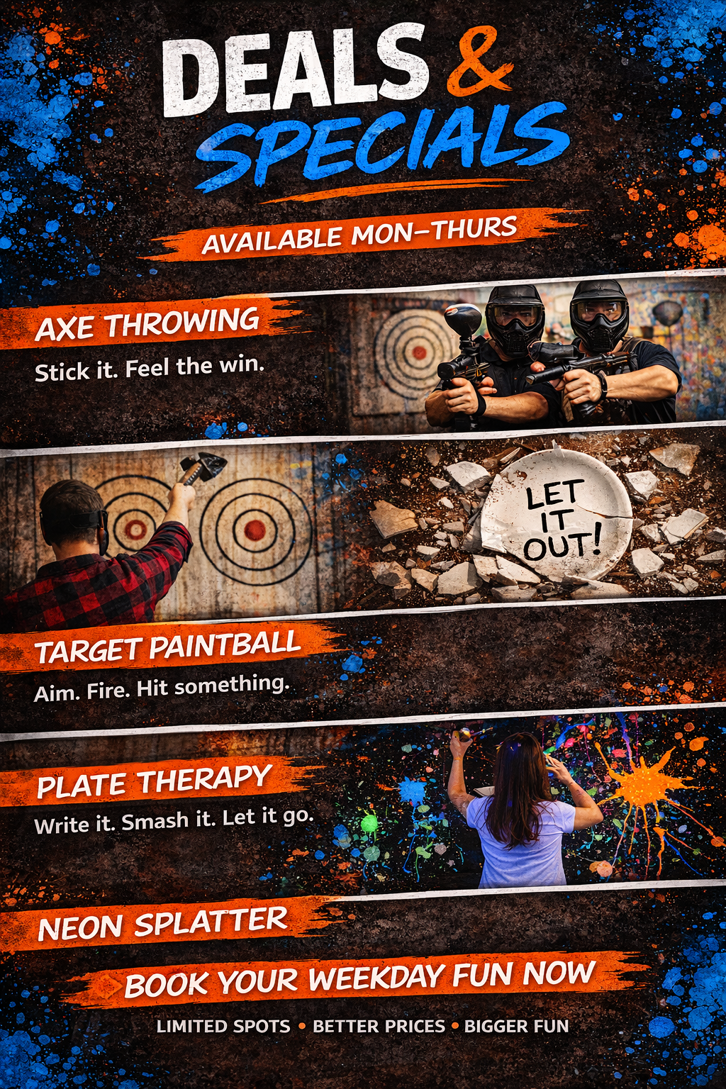 Looking for a fun, high-energy indoor activity near Fort Lauderdale? This weekday special at The Axe Hole House in Davie delivers two experiences in one — axe throwing and paintball — at an unbeatable value.